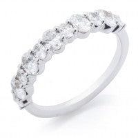 This ring features oval diamonds of alternating sizes going halfway around the band.