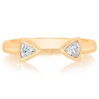 This ring features bezel set trillion diamonds decorating each point of the open band.