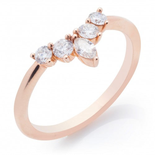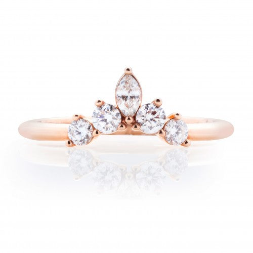 This curved band featured round diamonds with a marquise diamond at the top of the band.