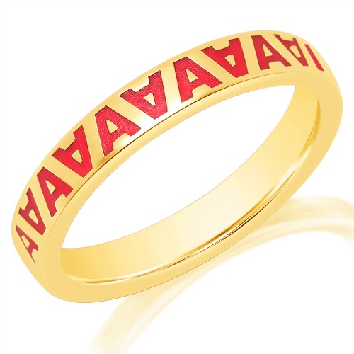 This ring features an alternating direction letter of your choice in enamel. The band is cast in 14KT gold.