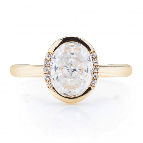 North South Oval Bezel Half Halo Engagement Ring Setting