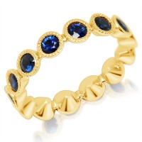 This eternity ring features sapphires which are bezel set and surrounded by a milgrain detail on each of the baskets.